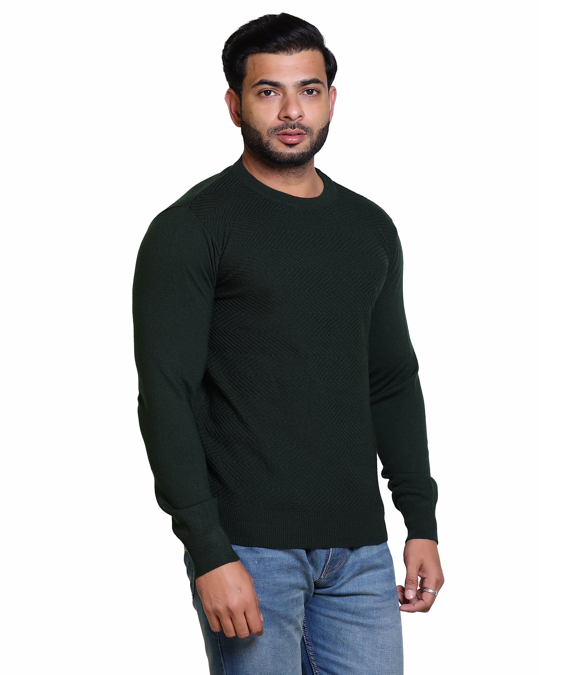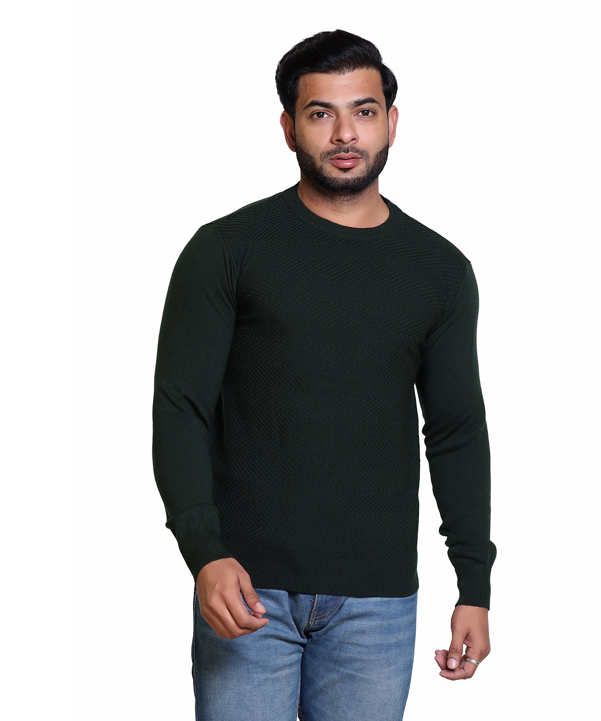 Men's Solid Round Neck Olive Sweater