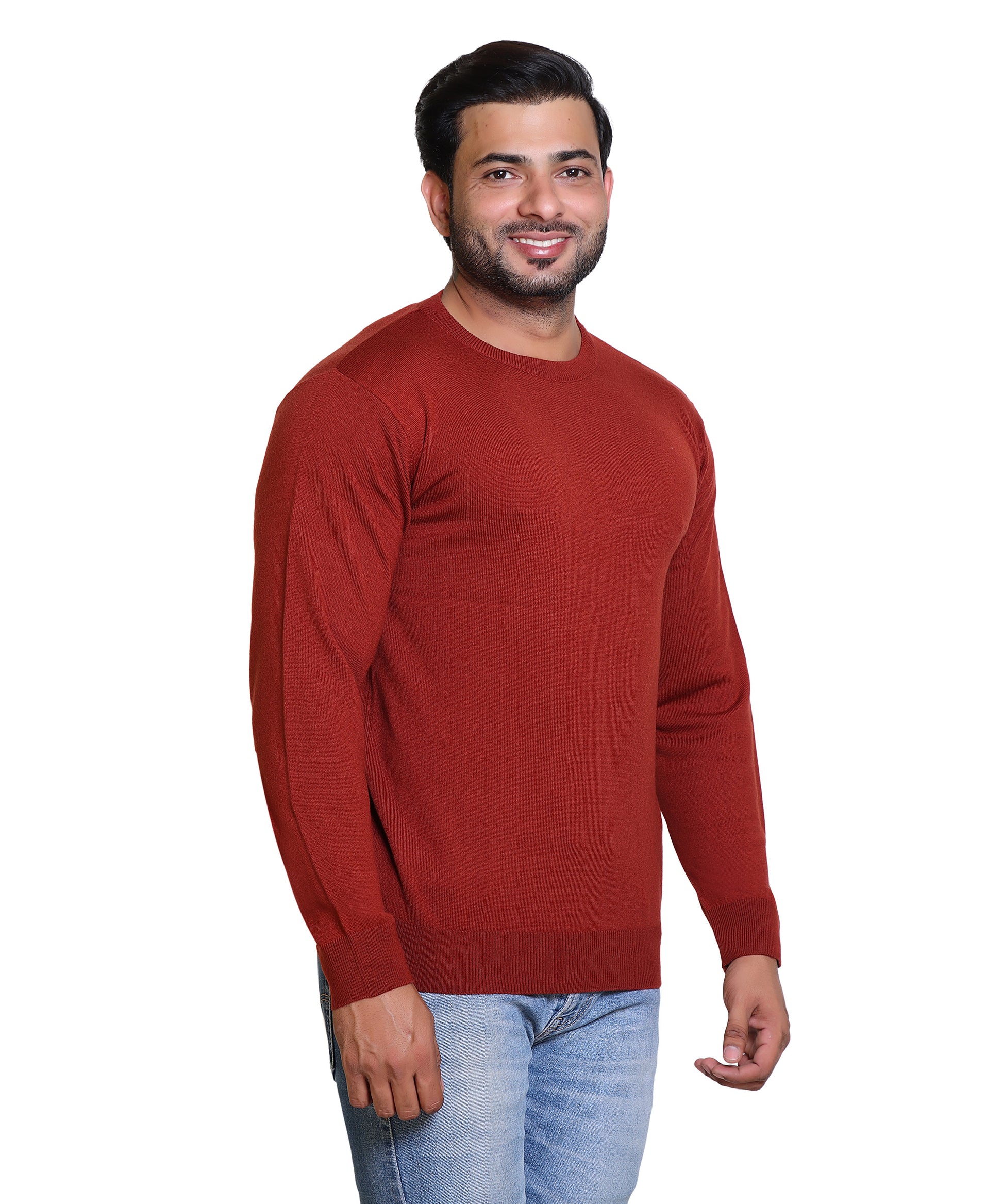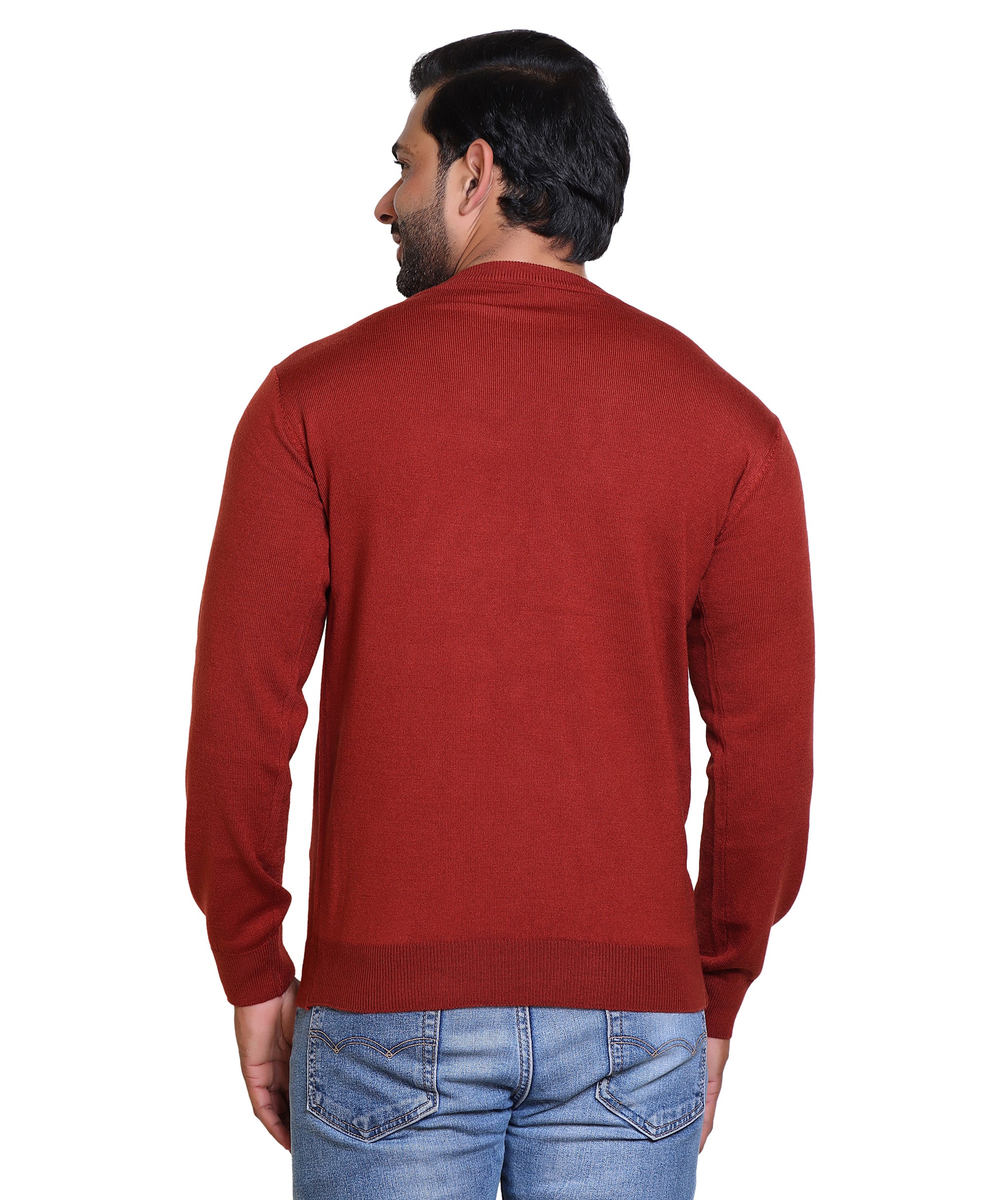 Men's Solid Round Neck Rust Sweater