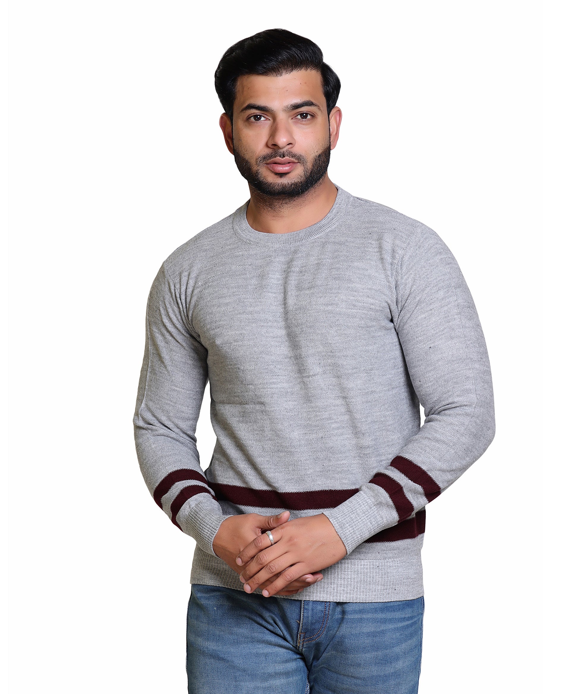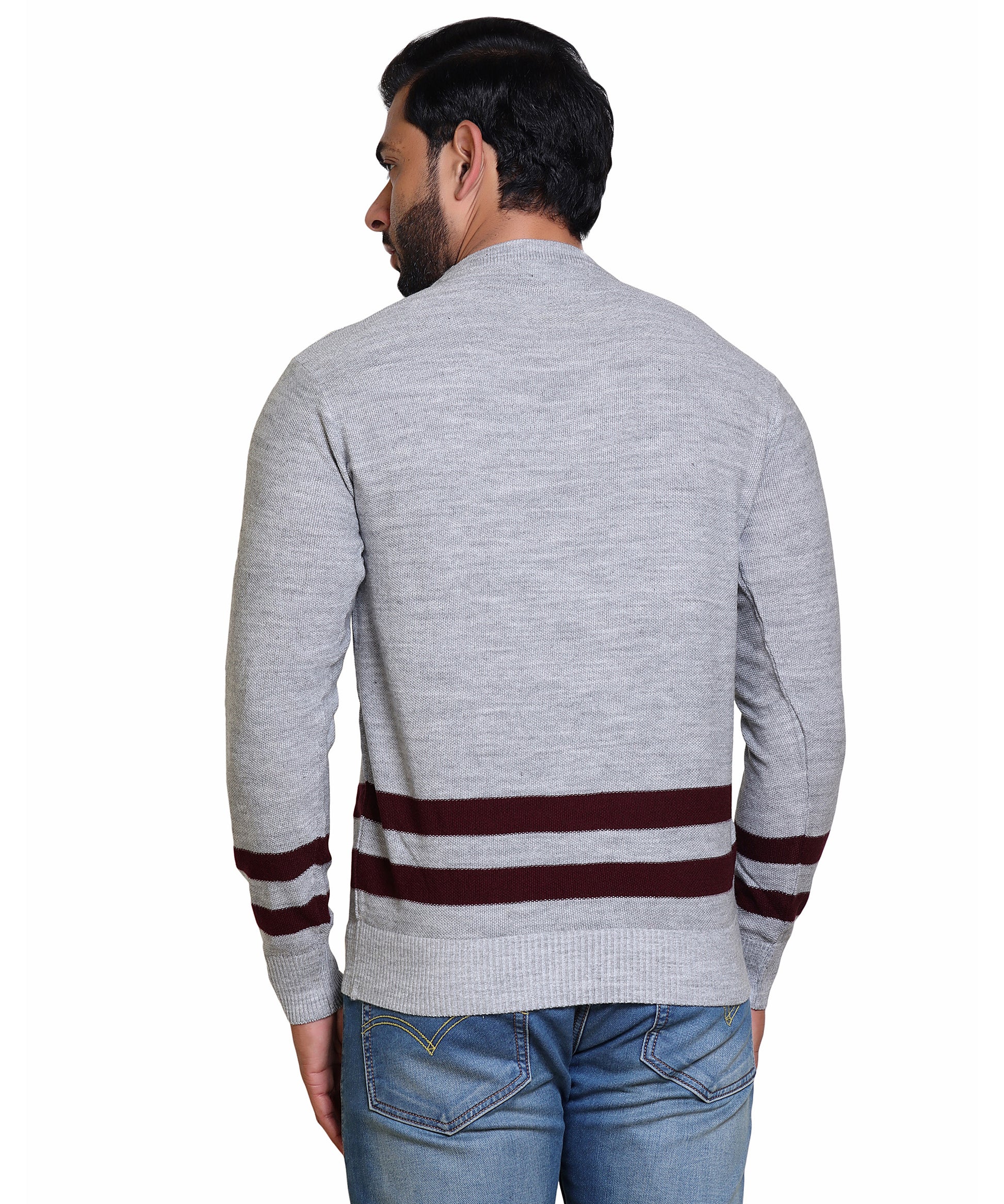 Men's Solid Round Neck Strip Sweater